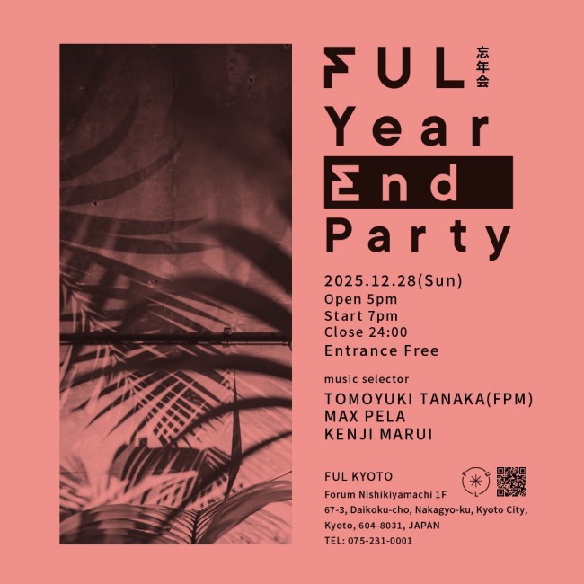 Tomoyuki Tanaka will be DJing at the year-end party for Kyoto’s music lounge “FUL,” which he produced!