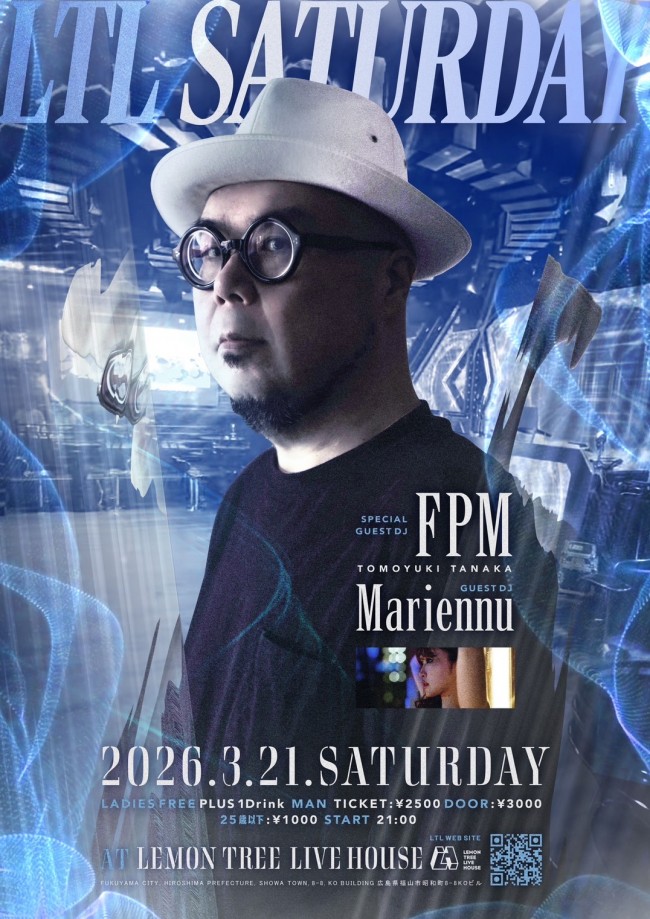Saturday, March 21, Tomoyuki Tanaka will DJ as a special guest at the “LTL SATURDAY” party at Club LEMON TREE LIVE HOUSE in Fukuyama City.