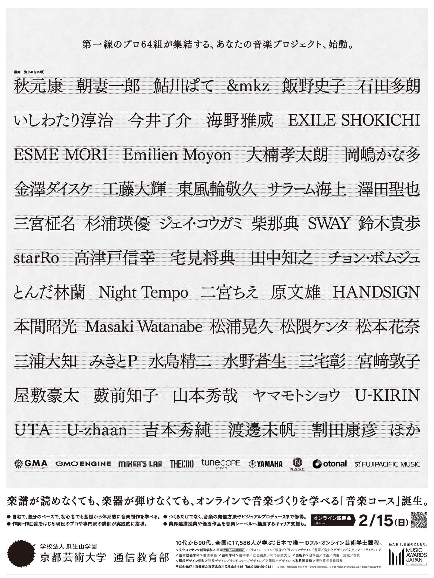 2026年度より田中知之が、京都芸術大学通信教育部 文化コンテンツ創造学科 音楽コースのゲスト講師をつとめることになりました。